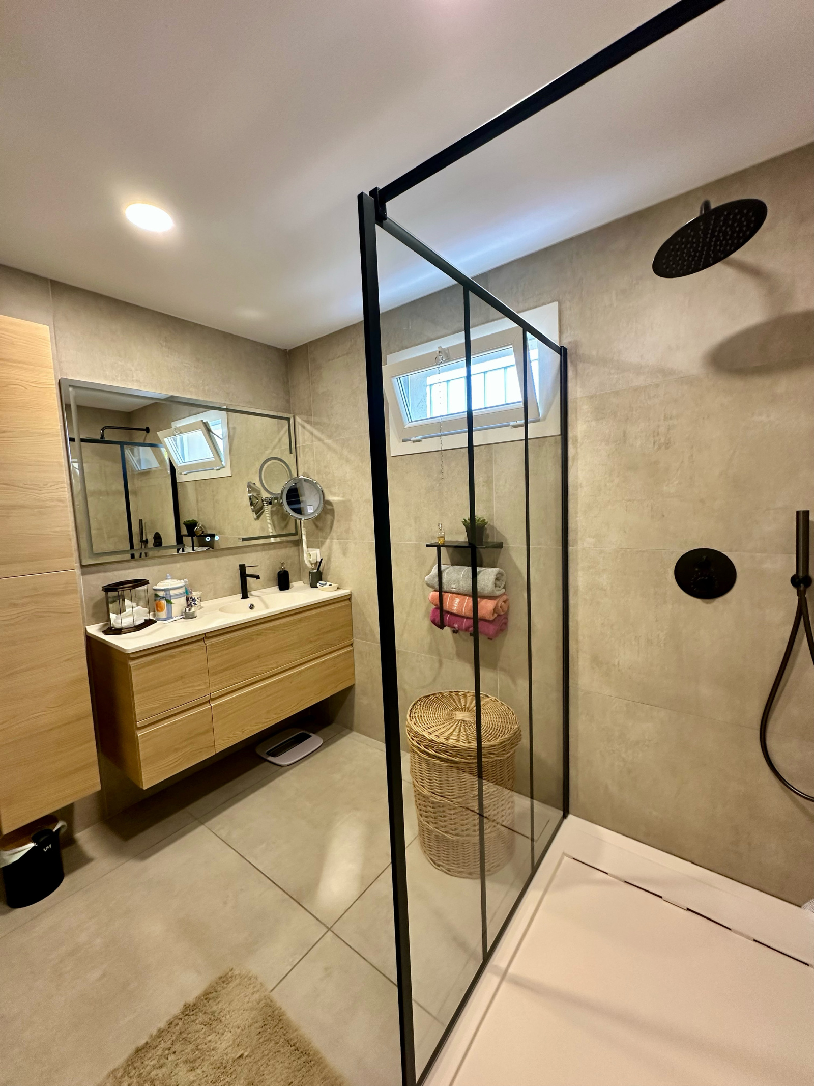 Une salle d’eau contemporaine avec douche à l’italienne et matériaux haut de gamme
